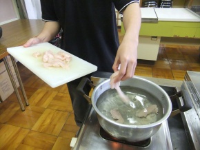 今日は高校2年生のS君が料理の腕前を披露してくれました。普段から目標に向かってウェイトトレーニングを欠かさないS君の料理は、やはりヘルシーな鶏肉のササミとゆでたまごでした。筋肉が喜びそうな料理を前にS君も満足そうでしたが、鍛えすぎて体を壊さないよう気をつけてくださいね。