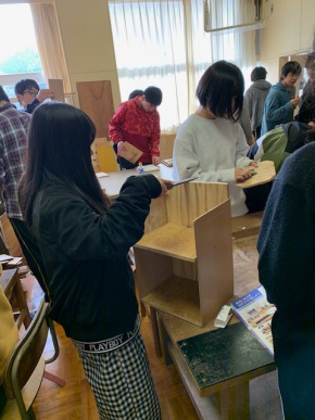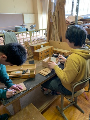 技術の時間に体育館シューズを置く靴箱を作っています。