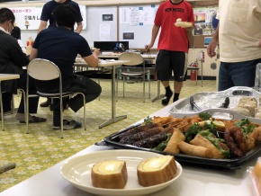 内容は前半にキックベースとバレーボールを行い、ちょっと豪華な夕食を食べ、そのあと花火を行いました。いつもと違い、夕方から夜にかけての活動です。