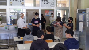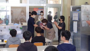 学園には月に一回、”横川さんのパンの日”があります。 卒業生の保護者である横川さんの「自分の息子にできなかったことを、西濃学園の生徒さんにしてあげたい!!」という思いがきっかけで、十数年前から始まり、今日がその”横川さんのパンの日”の最後の日でした。 生徒からは、花束と寄せ書きのプレゼントをさせていただきました。 長い間、本当にありがとうございました。