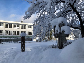 一昨日から降り始めた雪。昨日は揖斐川町では大雪警報も出ました。 今朝、高校校舎のへ来ると、辺りは一面しっかりと降り積もった雪、雪、雪。 生徒の皆が登校する前に、少しでも歩きやすいように雪かきをして準備をしました。 たまには良いけど、毎日となるとちょっと大変です。