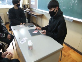 コロナウィルスのため集まるのが難しいご時世ですが、年末年始に親戚が集まればトランプですね。生徒達も予行演習をしています。