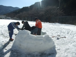 3連休が始まりましたが生徒たちは昨日に引き続き、かまくら作りで忙しいようです。より大きなかまくらを作ろうと残った雪を一生懸命かき集めています。しばらく大雪はなさそうですが、完成するのが楽しみです。