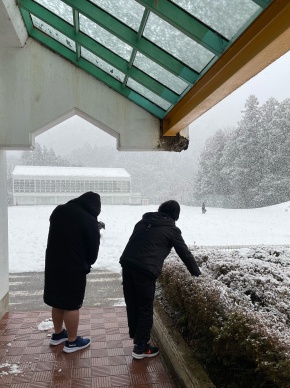 今冬は雪も多く寒い日が続いています。 職員は「毎日雪でもうやだなぁ」という気持ちになっているのですが、生徒は必ずしもそうではないようです。 今日も元気に雪遊びをしています! 自然との遊びは、まだまだ飽きないようです!(^^)!