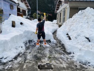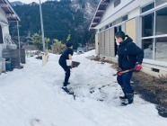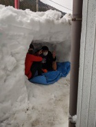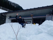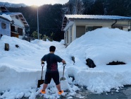2週間前に降った大雪がまだまだたくさん残っている藤橋ですが、ここ数日高校生を中心に雪かきを頑張ってくれている生徒が沢山います。 今日もK君、S君、Y君が教員住宅の雪かきをしてくれました。1メートル近く積もって、固くなった雪をあっという間に除雪してくれました!!頼もしい限りです! かまくらのなかで一休みしてから、また作業再開です。みんな本当にありがとう!!