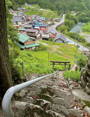 神社の階段は結構急で苦しんでいる子もいました。