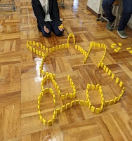 高校1年生のSSTでドミノを行いました。 1時間かけて何人かで大きなドミノを作って倒したり、倒すためではないけれどドミノアートに挑戦する生徒などなど、それぞれの個性を発揮して楽しみました。 さて、このドミノアートは、なんだと思いますか? 力作ですね!!