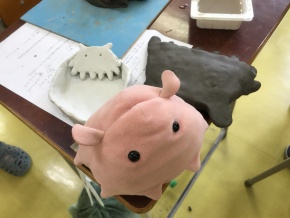 今日は中学校にて陶芸教室を行いました。 元西濃学園職員の田中先生にお越しいただき、教えていただきました。 お皿の形を整えたり、湯呑みを作る子もいたり、それぞれ好きなものを形作りました。 大好きなメンダコを作っている子もいました。