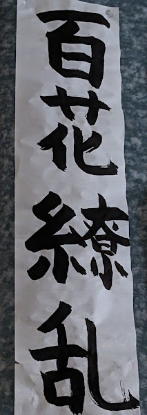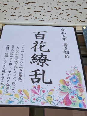 今のHRの時間に中学2年生が書初めを展示してくれました。 今年のお題は「百花繚乱」。 中学3年生が考えてくれました。 意味は「いろいろな花が咲き乱れること。転じて、秀でた人物が多く出て、すぐれた立派な業績が一時期にたくさん現れること」です。 西濃学園は、百花繚乱!