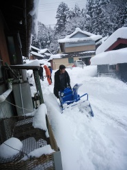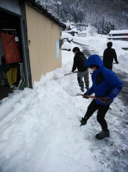 昨日からの大雪で藤橋地区、川上地区は今シンーズン初めての大雪に見舞われました。川上地区の方から要請を受け、6名の生徒が出動しました。多くの生徒は初めての大雪にびっくりしながら、懸命に取り組みました。また地区の方から高校2年生のY君は小型の除雪機の操作を教えて頂き上手にこなしていました。除雪作業終了後、美味しいおしるこをふるまって頂きました。生徒はまた呼んでくださいと言って学園に戻ってきました。みんなの顔に何かすがすがしさを感じ、心温まる除雪作業でした。