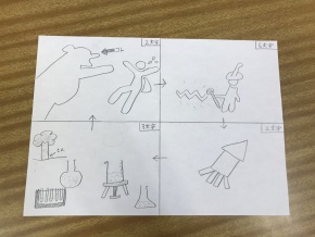こちらの写真はKくんが作った絵しりとりです。 この絵しりとりの面白いところは、4つの絵でぐるぐると繋がるところです。 とてもうまくつながっていて、絵も特徴をよく捉えています。 みなさんは解けましたか? Kくんは現在、第2弾を作成しているとのことなので、そちらの完成を楽しみに待とうと思います。