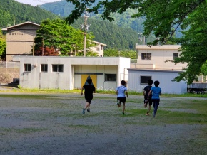 ゴールデンウィーク明けのある日、 藤橋校舎の校庭でトレーニングをする生徒たち。