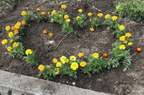 ハートです! 今後もいろいろな花を花壇に植えていくそうです。楽しみですね!