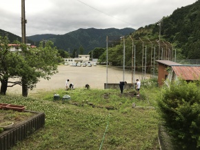 昨日のさつまいも作りに感化されたのか、今朝は中学3年生の有志メンバーが畑を整備していました。