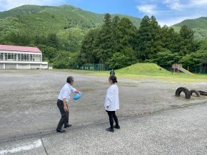 高校2年生が体育でフリスビーをしていました。授業終了の挨拶後も数名の生徒がフリスビーをしていると、なんと学園長が飛び入り参加!学園長にアドバイスをもらった生徒は、授業の成果に加えてさらにきれいに飛ばせるようになりました。休み時間が楽しいひとときになりました。