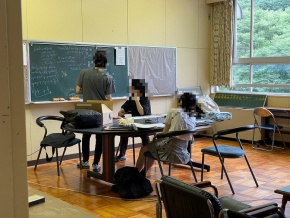 早いものでもう7月です。もうすぐ夏休みだ!と喜びたいところですが、学園では4日(火)に中学校、5日(水)、6日(木)に高校で定期試験があります。 いつもはボードゲームやカードゲームをする生徒でにぎわう「憩いの間」も、今日は別です。生徒たちが試験勉強に励んでいます。こちらの高校生は、黒板を使って、数学の勉強をしているところだそうです。 試験に向けて頑張れ!学園生!