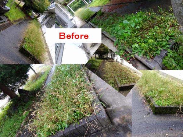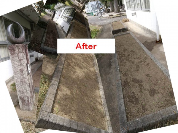 10月は、体育祭に始まり、専門学校見学、職場体験、交流会、モレラ展示会、文化祭・・・、中学も高校も予定表には行事がたくさん入っています。行事に追われている間に久瀬校舎(高校の校舎)は、雑草がたくましく育っていました。涼しくなってきたこの時期を逃すわけにはいきません。Before After をご覧あれ!