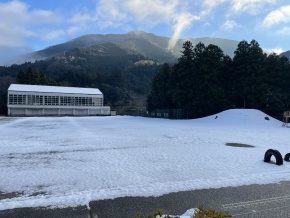 週明けの月曜日、出勤すると雪が残っていて驚きました。空気がとても冷たくて凛とした朝です。 金曜日の夜から雪が降って積もりました。もしかしたら土日も降ったかもしれません。 少し溶けた感じがしますが、生徒たちはこの積もった雪を見る(遊ぶ)ことなく冬休みに入ってしまったのが残念です。 中学校・高校があるこの地域は、ホワイトクリスマスになりました!