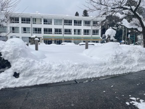 昨日は天気予報どおりの大雪で中高ともに休校になりましたが、今日は授業を行っています。朝、登校してあまりの積雪に驚いた生徒も多かったと思います。そして、休み時間は元気いっぱい雪遊びを堪能していました。 足跡いっぱいの写真(左)は遊び終わった後のものです。でも、校庭・運動場はとても広いのでまだ未踏のところもあります。溶ける様子はないので明日も雪遊びが楽しめますが、生徒たちは雪遊びをするかな。