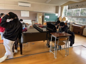 中学校の卒業式も4日後に迫った今日。中3の寮生たちは最後の週末を学校で過ごしています。 そんな中、音楽室から音がしたので覗いてみると、中3の生徒たちがピアノの周りに集まっていました。どうやら、卒業式の日に披露する曲の練習をしていたようです。 自分たちの卒業式をより良いものにしようと自主的に企画し、実行する中3の生徒たち。以前の動画撮影の時と同じく、これ以上練習風景を見せてもらえませんでしたが、演奏を聴けるのを楽しみにしています!