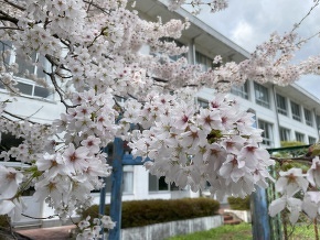 4月に入り、職員たちは新年度の準備に追われています。慌ただしい中で、ふと春を感じてほっこりしています。 今年の桜は例年より開花が遅く、今が満開です!先週はまだ蕾は固かったのですが、この数日の暖かさで一気に咲きました。このまま入学式・始業式まで咲いていて、生徒たちを迎えてくれたらいいなと思います。