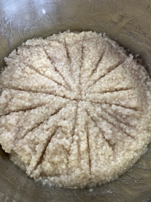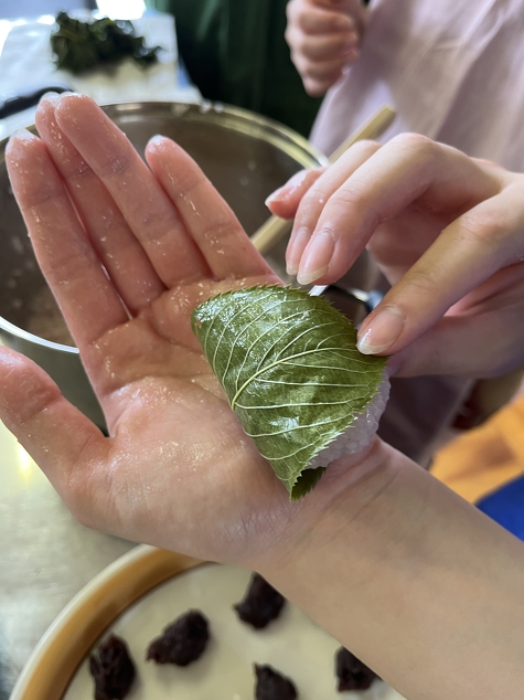 今日は中学3年生が家庭科の授業で桜餅を作りました。桜の葉の塩漬けは自家製で、グラウンドの桜の木から採取した葉を使いました。道明寺粉をイチゴで色付けし、粒あん・こしあん・あんなしの3種類の桜餅が完成。帰りの会で中学2年生と1年生に配り、生徒全員でいただきました。作りたての桜餅、とっても美味しかったです。ごちそうさまでした!! ※道明寺粉は水に浸して蒸した餅米を乾燥させて粗めに挽いたもの。