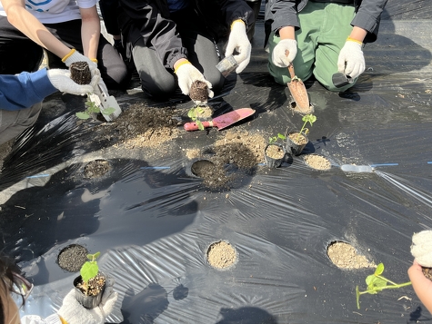 今日は先日の授業の続きで、校舎南側の畑にさつまいもの苗を植えました。普通に植えるだけでは面白くないので、根を水平、垂直、斜めの3パターンで植えてみることになりました。植え方によって収穫量が多くなったり、ビックサイズになったりするそうで、どの植え方が適するのか楽しみです。里山インストラクター小寺さんのアイデアで、畑の四隅にはサル対策として徳山なんば(唐辛子)も。明日から当番制で水やりを行います。収穫は9月か10月頃。焼き芋が作れるくらい大きなさつま芋になりますように。