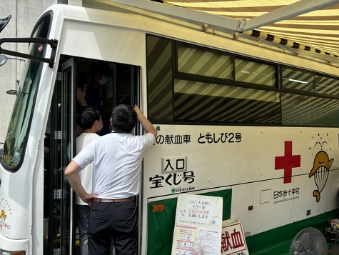 7月8日に岐阜県赤十字血液センターから献血バスが高等学校にやってきました。