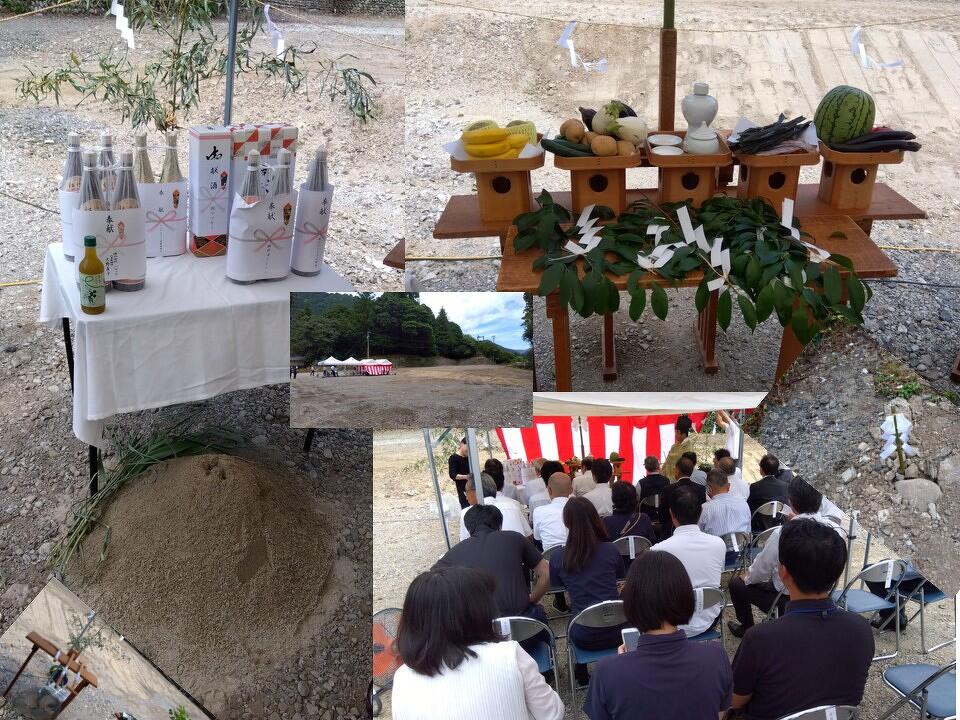 生活教育棟(寮)着工にあたり、地鎮祭を執り行いました。旧久瀬中学校解体、運動場、中庭の整地が終わり、いよいよ建設工事が始まります。急激に景色が変わり、戸惑う気持ち、あったものがなくなったので寂しく思う気持ち、新しいものができるワクワクする気持ち、職員一同、色々な気持ちを胸に、工事の無事を祈りました。