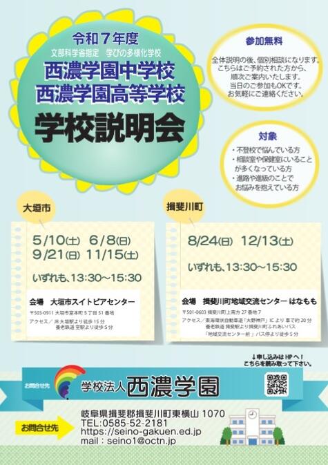 西濃学園中学校および高等学校への入学や転校に関する情報、