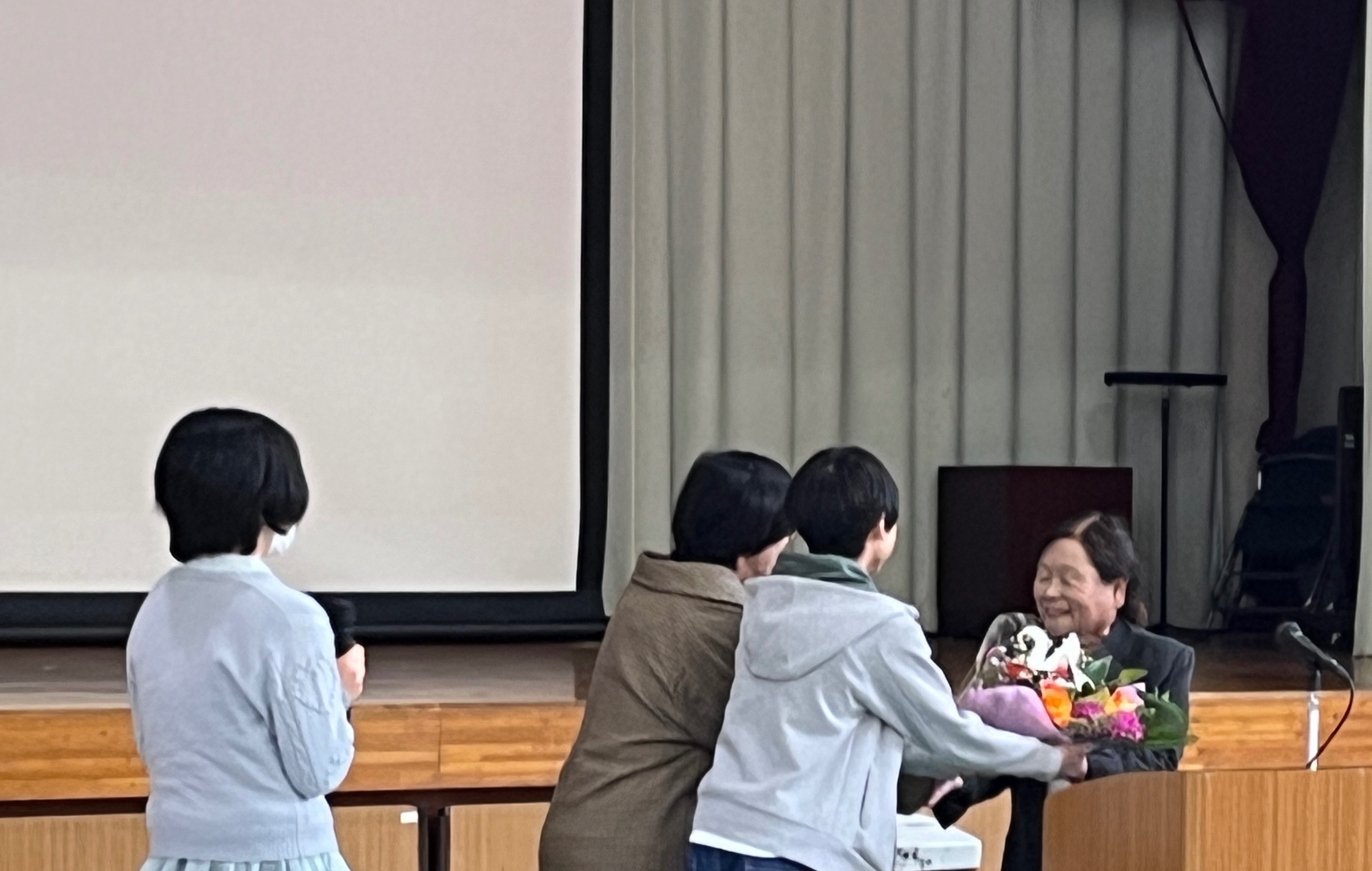 今日は中学の修了式でした。例年と異なるのは、今日が藤橋でみんなと過ごす最後の日になることです。式の後、町内の善龍寺のご住職の横山さんをお招きし、藤橋の思い出を語る会を行いました。横山さんと西濃学園の付き合いは長く、これまでに何度か生徒がお寺に遊びに行かせてもらっていました。先日の日曜日には散歩中の生徒が横山さんと出会い、お寺でトランプをして遊んだそうです。