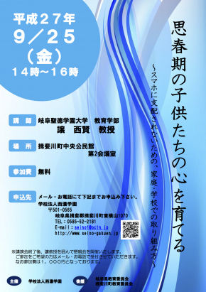 平成27年9月25日(金)西濃学園主催の教職員向けの講演会を開催いたします。