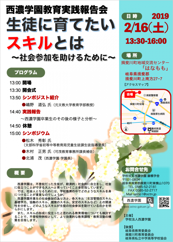 平成31年2月16日(土)13時30分より「西濃学園教育実践報告会」を開催いたします。
