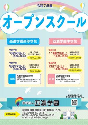 今年度も、西濃学園中学校・高等学校「オープンスクール」を開催いたします。
