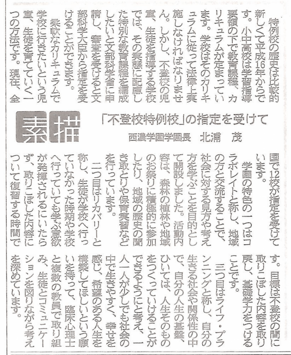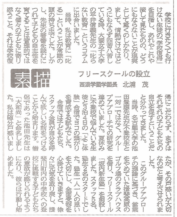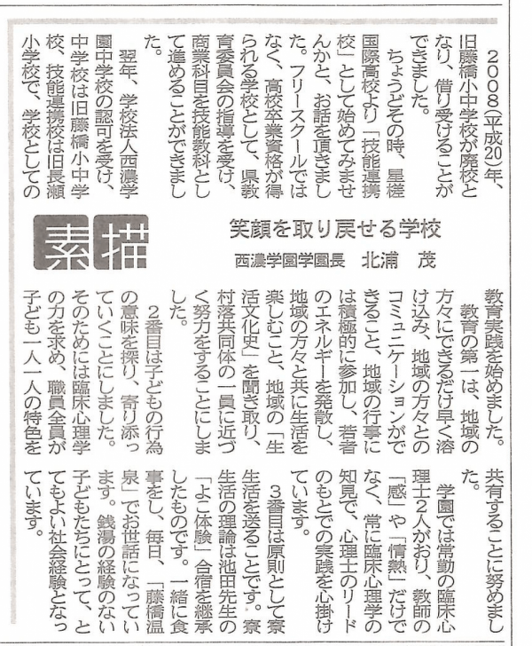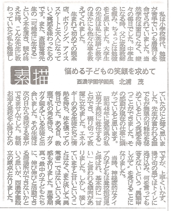 岐阜新聞で連載されました【素描 悩める子どもの笑顔を求めて】