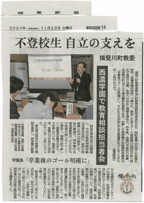 岐阜新聞に掲載されました【西濃学園で教育相談担当者会 卒業後のゴール明確に】