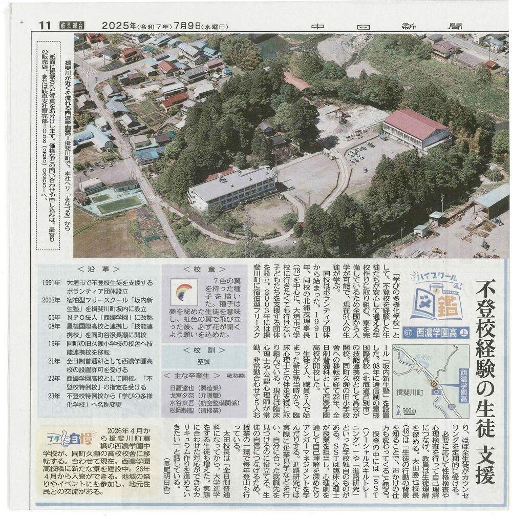 中日新聞に掲載されました【不登校経験の生徒 支援】